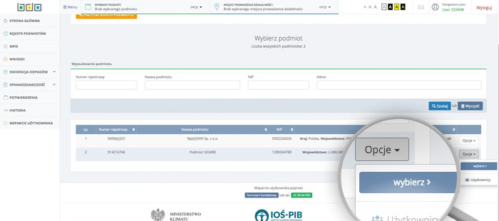 Wybieramy podmiot z listy zarejestrowanych podmiotów