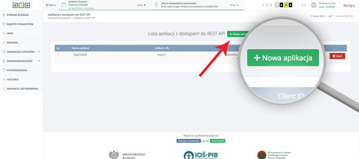 Otworzy się nowa podstrona, na której można dodawać nowe aplikacje do swojego konta BDO. Kliknijmy przycisk Nowa Aplikacja.